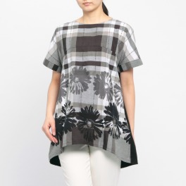 前身頃にタックをほどこし、後ろ身頃にはギャザーを配すことで、身体のラインをカバーしながら、きちんと感を演出。