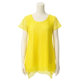 ■身頃: 3種類のラッセルレースを使用。ざっくりと立体的に編み上げ、涼しげな雰囲気をプラスしました。