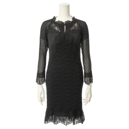 表地にストレッチレースを使用した、ロングワンピースです。ボディーラインはストレートシルエットですっきりと見せ、裾周りはフェミニンな印象のフレアーに仕上げました。レースを前ヨークからぐるりと一周させたラグランスリーブにより、ドロップショルダーのように見せています。【詳細】 ・裾スリット:なし ・肩パット:なし ・ポケット:なし 【素材】 ・表地: (前後身頃中心部分生地)ナイロン72%、綿26%、ポリウレタン2% (両脇部分生地)綿58%、ナイロン40%、ポリウレタン2% (肩部分生地)ポ…