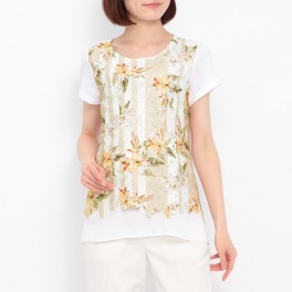 アロマート異素材切替プリントレースプルオーバー