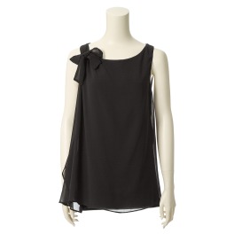 ナフナフ異素材コンビネーションリボンアクセントノースリーブプルオーバー