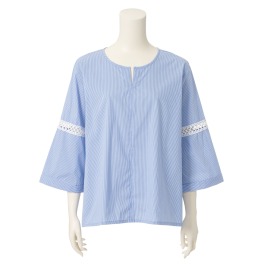 ピアチェリーナストライプレースアクセントプルオーバー