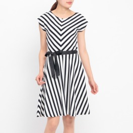 エジェリ パリスストライプフレンチスリーブワンピース