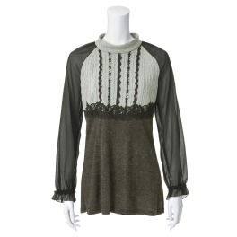 袖部分をレース素材で切り替えたデザインがフェミニンな印象のプルオーバーです。ふっくらとした袖がトレンドのシルエット。