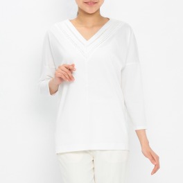 スタイル・ラヴィーレースアクセントVネックロングプルオーバー