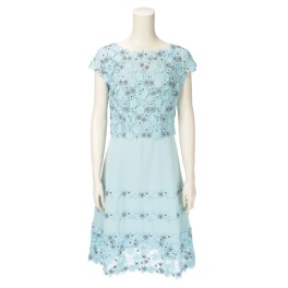 クリス・セリーンフラワーレース切替フレンチスリーブワンピース