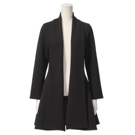 ■身頃:程良い伸縮性とドレープ性のあるエレガントな素材を使用。前立て部分には、あえて留めを配さず、簡単に羽織れる仕様に。