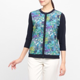 オン ドゥアンド リラックスリバティプリント切替七分袖カーディガン