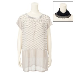 ポケット シルク プルオーバー レディース 天使の綿シフォン異素材切替チュニック &ネックカバー
