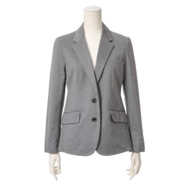 ■身頃:伸縮性のあるジャージー素材を使用。フロントは、シンプルで着回し力の高いシングル仕様に仕立てています。