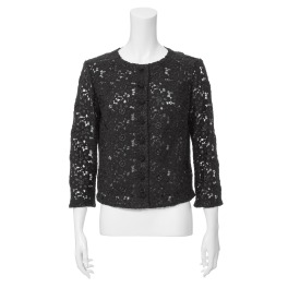 ケミカルレースで花柄を表現した、ノーカーラージャケットです。柄の表情を生かし、ダーツなどをあえてほどこさないシンプルなつくり。