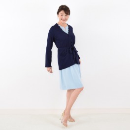 キャットインザ・クローゼット共布ベルト付強撚コットンレーストリミングカーディガン
