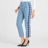 ミント ミント ミントストレッチデニムサイドレースアクセントテーパードパンツ