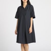 ■身頃: 長く細い糸を用いて高密度で織り上げた、綿混のタイプライター素材を使用。ハリコシのある質感と繊維が密に詰まった独特の風合いが魅力です。しっかりとしたつくりでありながら、軽やかな仕上がりとなっています。 小さめのスタンドカラーに設定し、フロントはスキッパーデザインにすることで、軽やかさとすっきりとした印象をプラス。 前後身頃にタックをほどこし、分量感をたっぷりと取った立体的なパターンを採用。ボディーラインが響きにくいシルエットに仕上げました。 肩の丸みをきれいに取ったドロップショルダーに…