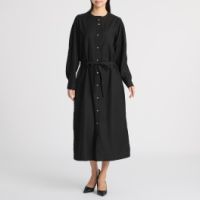 フレア共布ベルト付スタンドカラー前開きワンピース