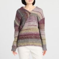■身頃: 1本の糸を多色に染め上げたスペースダイ糸を使用し、3ゲージの天竺編みで仕立てました。 シャギー起毛加工をほどこすことで、スペースダイ糸の色合いが柔らかな印象になり、かすり調のグラデーション…