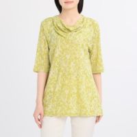 ココンライフ ドゥジャガード編配色ボタニカル柄五分袖プルオーバー