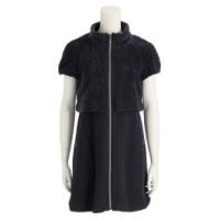 レ・ラリックフェイクファー切替半袖ジップアップベスト
