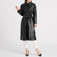 元町ゼラール 共布ベルト付ライトラムレザーコート