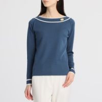 ロベルタディカメリーノフォルトゥーナ配色アクセントボートネックニットプルオーバー
