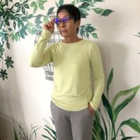 ■身頃: アクリル、レーヨン、ポリウレタンを混紡した糸を用いた、ベア天竺素材を使用。肌触りがなめらかでとろみのある質感です。