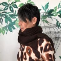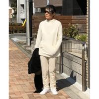 ■身頃: 14番手単糸を、12ゲージの天竺裏編みで仕上げた、ブークレ素材を使用。伸縮性があり、軽やかで暖かな着心地が特徴です。