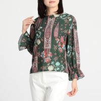 ダリュ リファインドペイズリー調スカーフ柄パフスリーブプルオーバー