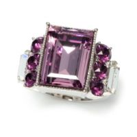 落ち着きのあるクールな輝きを放つ、レクタングルカットのスワロフスキー社製クリスタルガラスをメインにあしらったリングです。