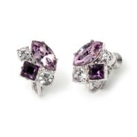 パープルカラーのマーキースカットと、少し濃い色味のスクエアカットのスワロフスキー社製クリスタルガラス、クリアーのラウンドカットのビジュウをバランスよく配したイヤリング/ピアスです。