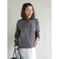 ボン・サンスストライプ柄シャーリングアクセントプルオーバー