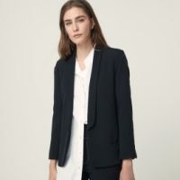 (ジャケット) ■身頃: 前はすっきりとしたVネック、後ろは首に沿うスタン…