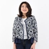 マニフェムインナーベスト付フラワーモティーフレースノーカラージャケット