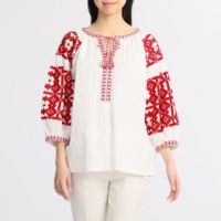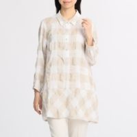 タバサブロックチェック柄切替デザインチュニックブラウス