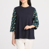 かわいらしい印象を演出するパフスリーブで、袖にのみ当ブランドオリジナルの花柄刺しゅうをほどこしてアクセントにしました。