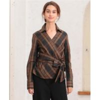 ナラカミーチェ共布リボン付カシュクールデザインチェック柄シャツ