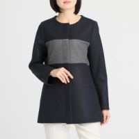 ネックラインをきれいに見せるノーカラーを採用。