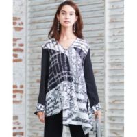 ナラカミーチェプリントデザイン切替長袖ブラウス