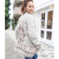 ■身頃: 脱脂していない羊毛とアメリカ杉の皮繊維を混紡した、太めの毛糸を使用。 きっちりと目を詰めて編み上げているため、暖かく、おしゃれなアウターながら防寒性も期待できます。