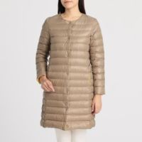 アンリック オー ブルー配色デザインノーカラー軽量ダウンコート