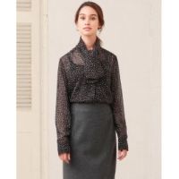 ナラカミーチェシフォンドット柄プリントボウタイアクセント長袖ブラウス