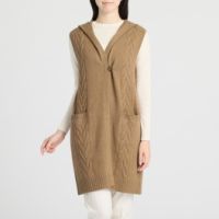 ネイチャーズキャメルケーブル柄フード付ロングジレ