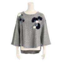 ダジュール異素材切替フラワー刺しゅうアクセントプルオーバー
