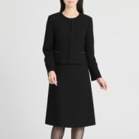 ブラックフォーマルノーカラージャケット&ワンピースアンサンブル