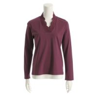 モン・シュ・シュスカラップ刺しゅうレースネックアクセント長袖Tシャツ