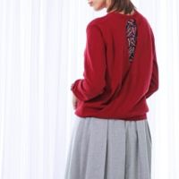 ■身頃: ハイゲージ(12ゲージ)で編み上げた、目面が美しくきれいなニット素材をベースに使用。 フロントには当ブランドオリジナルデザインの配色レースをあしらいました。