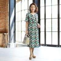 ボン・サンス共布ベルト付強撚スムースカシュクール風ワンピース