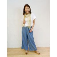 ボン・サンス共布ベルト付ソフトデニムワイドパンツ