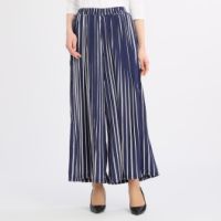 ボン・サンスストライプ柄プリーツデザインワイドパンツ