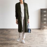 アール アンド エムフェルガーナリネンコットン透かし柄アクセントロングカーディガン
