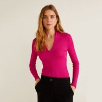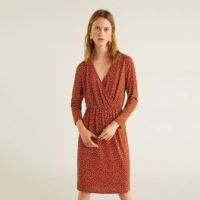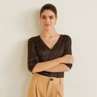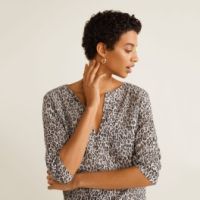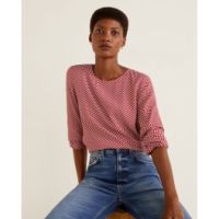 マンゴ異素材コンビネーションプリント切替Vネックプルオーバー